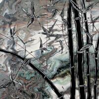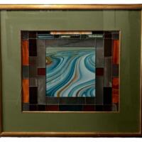 Mike Egan’s "Fruit Bowl", measuring 26" x 20" x 3.5", transforms everyday domestic life into a bold, geometric tableau. Crafted entirely from hand-painted wood, this dimensional work captures the warmth of a home kitchen: a bowl overflowing with stylized fruit sits on a crisp white tiled backdrop, framed by hints of windowpanes and cabinetry. Every shape, shadow, and color block is meticulously constructed, inviting the viewer to pause and appreciate the art of the ordinary.